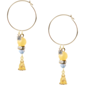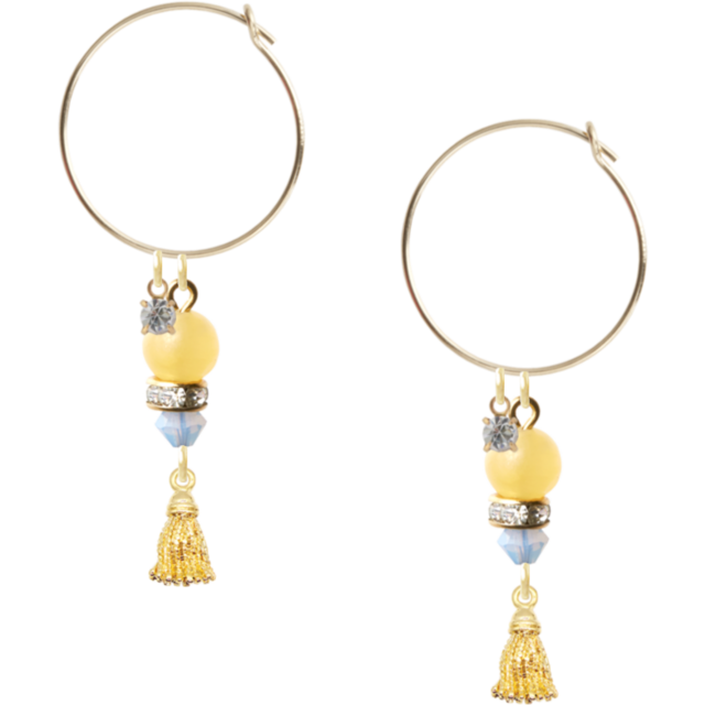 洗練されたデザインが魅力のピアス【Queen】のご案内です。この特別なアイテムは、イエローカルセドニーとスワロフスキーを巧みに組み合わせ、個性的でありながらもエレガントな印象を与えます。タッセルのアクセントが動きに合わせて揺れ、あなたのスタイルに華やかさを添えます。