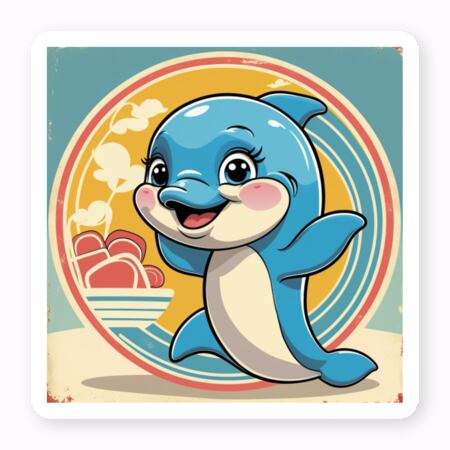 オールドアメリカン風のレトロなイルカのステッカーです。